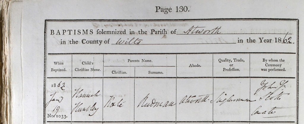 As I have mentioned, the only record I have of Hannah Redman living with other family members is the 1871 census, when she was described as a visitor. It was only through the indexing of the Atworth baptismal registers that I discovered her baptism and her true identity was revealed. Without a record of her baptism, her life may well have remained undiscovered and her story unknown. The value of looking at parish registers over a wide period of time is clear: you may find some surprising entries. Some babies born illegitimately may only be recorded in parish registers because they died in infancy. Others, particularly when were brought up away from their birth mother in another family, are undetected and unknown. They need to be found.