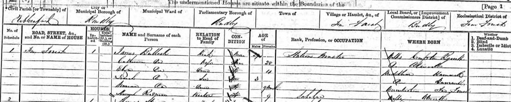 In 1870, James and Catherine had a daughter, Miriam, and the following year, the family were recorded in the 1871 census: