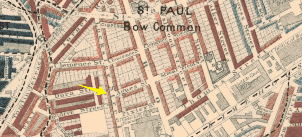 You can see from the map that Locksley Street, with its light red housing, was classed as “Fairly Comfortable. Good Ordinary Earnings” in the late 1890s on Charles Booth’s Poverty Maps: