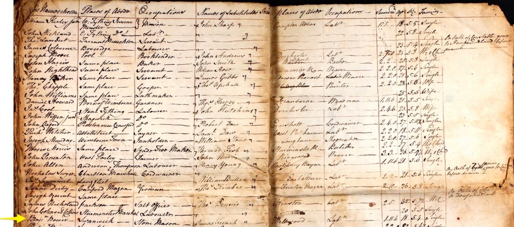 Dorset History Centre; Settlement Examinations; Reel: MIC/R/1478; Reference Number: PE/COC: OV 188/1 – 188/260 via http://www.ancestry.co.uk