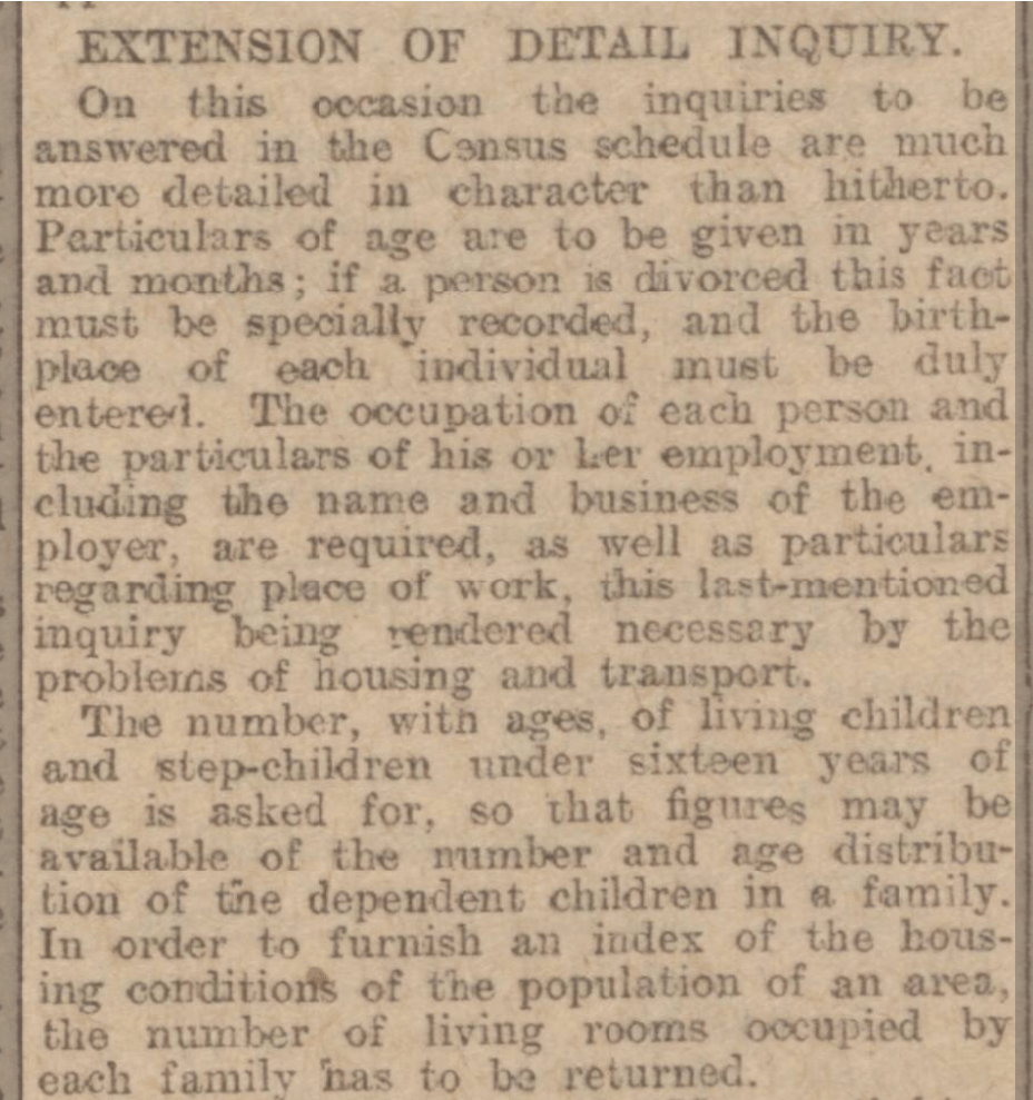 Newspapers played an important role in educating people on the information that they were required to submit and why it was being sought. The Western Morning News, that covered much of the West Country, gave readers a heads-up before the census schedules were distributed: