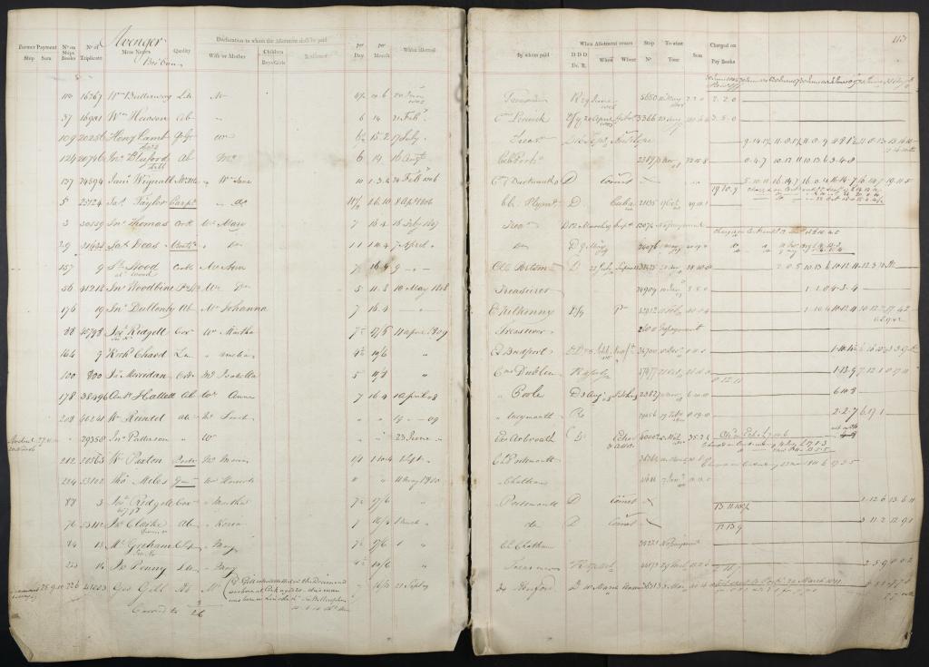 | By whom paid | When Allotment ceases | Stop No. | To what Time | Sum | Charged on Pay Books |